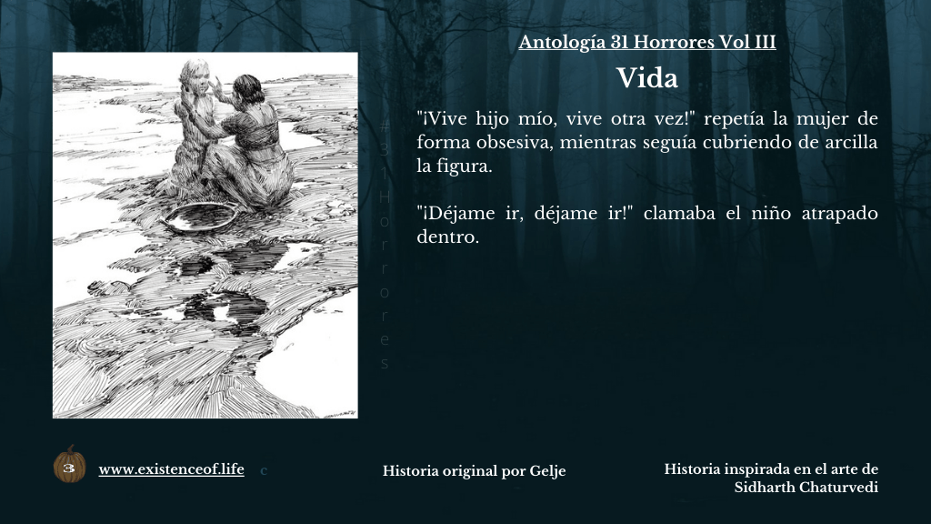 «¡Vive hijo mío, vive otra vez!» repetía la mujer de forma obsesiva, mientras seguía cubriendo de arcilla la figura.